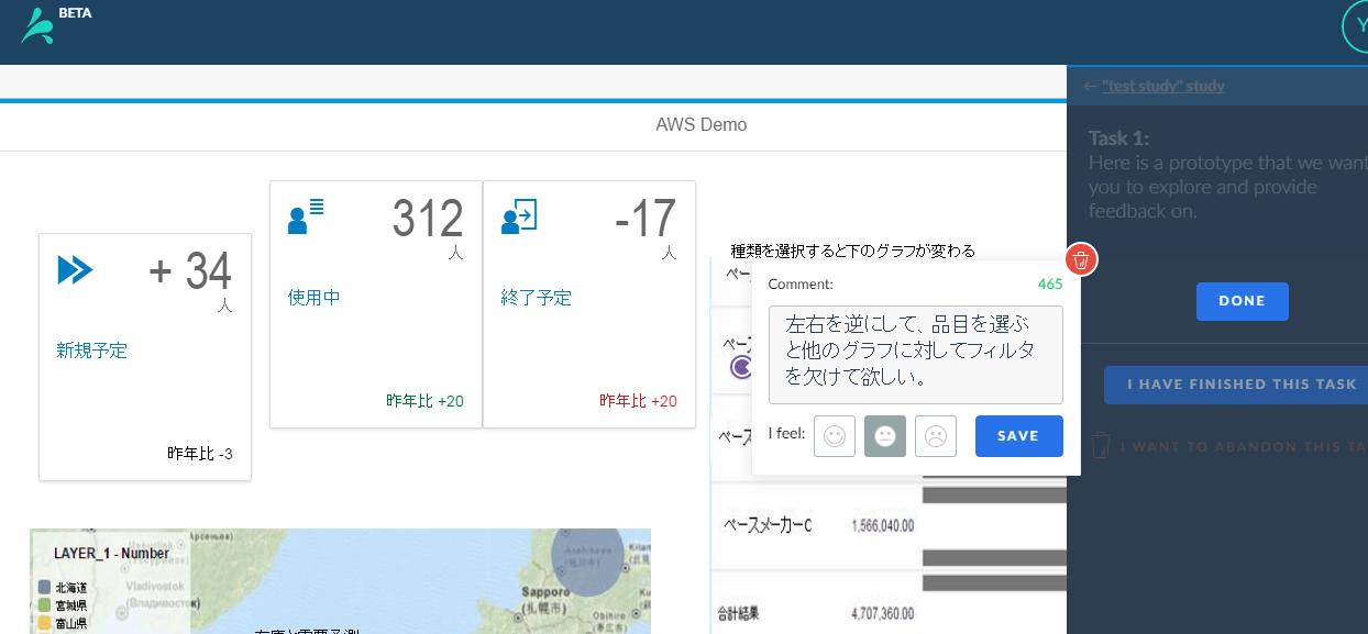 下図のように画面の場所を示してコメントと評価をすることができます。
