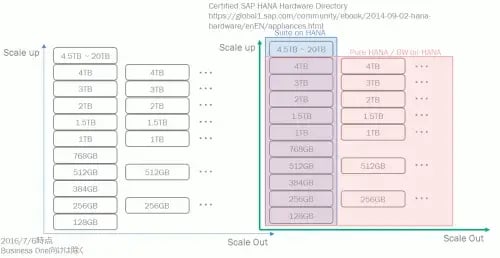 また、Pure HANAおよびBW on HANA用途の場合、CPU1coreあたりのメモリーサイズ制限により、4TB以上はScale Outでの構成となります。