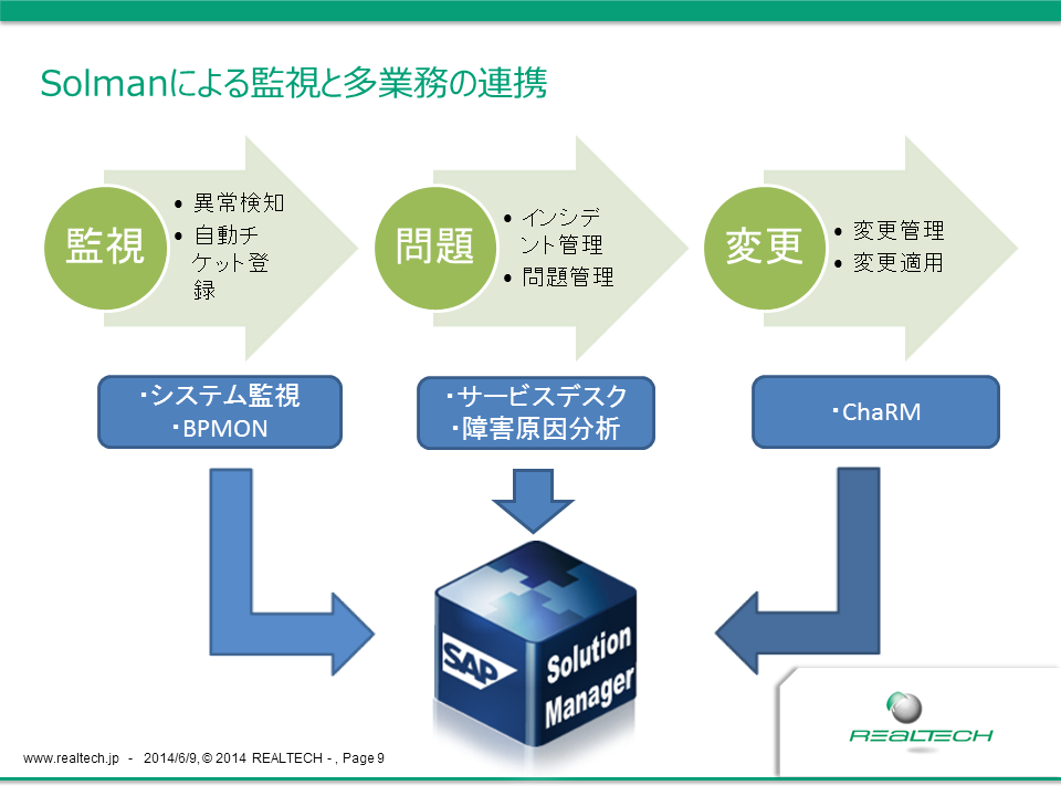 問題への対応として変更が必要な場合はSolMan ChaRMと連携して変更依頼管理